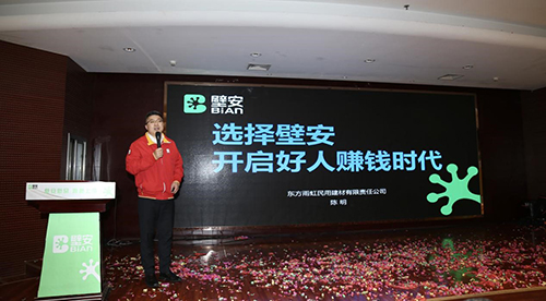 民建集團壁安粘合劑事業部總經理陳明先生向在場嘉賓詳細闡述了壁安品牌的由來、意義、愿景及壁安的生意模式和營銷策略。壁安的創立,代表著東方雨虹在民用砂漿領域的信心、雄心和決心。