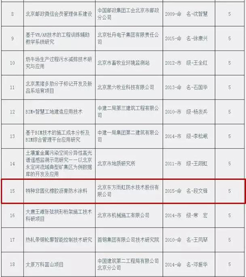 其中北京東方雨虹防水技術股份有限公司段文鋒工作室的“特種非固化橡膠瀝青防水涂料”獲得創新項目助推;北京東方雨虹防水技術有限公司的“具有阻燃特性的非固化橡膠瀝青防水涂料及其制備方法”、東方雨虹民用建材有限責任公司的“一種預制構件專用早強聚羧酸減水劑及其制備方法”、徐州臥牛山新型防水材料有限公司的“一種單組分反應觸變型聚氨酯防水涂料”獲得創新發明專利助推。