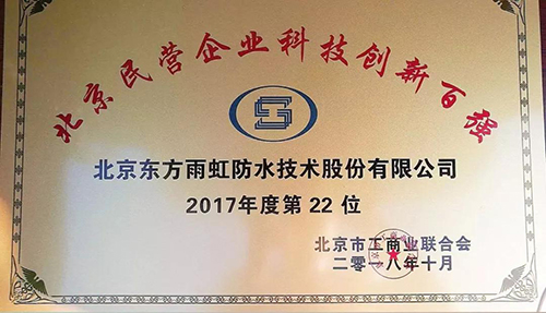 10月19日,2018北京民營(yíng)企業(yè)百?gòu)?qiáng)發(fā)布會(huì)在北京雁棲湖國(guó)際會(huì)展中心召開(kāi)。發(fā)布會(huì)上,北京市工商聯(lián)發(fā)布了2018北京民營(yíng)企業(yè)百?gòu)?qiáng)榜單和專項(xiàng)調(diào)研報(bào)告。東方雨虹以優(yōu)異的業(yè)績(jī)表現(xiàn)和突出的科技創(chuàng)新表現(xiàn),躋身北京民營(yíng)企業(yè)百?gòu)?qiáng)名榜單第29位,北京民營(yíng)企業(yè)科技創(chuàng)新百?gòu)?qiáng)第22位。
