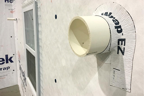 特衛強柔性泛水EZ是一種柔性多功能的自粘泛水膠帶,主要用于處理門窗洞口、轉角處等積水、滲水、漏水風險較大部位,是特衛強建筑圍護系統綜合方案的一部分,用來保護建筑免受空氣與水的侵蝕,獨特的設計使其能夠對不同形狀和尺寸穿透件的外圍進行密封,從而增加整個建筑圍護結構的氣密性,同時也有助于提高墻體的耐久性和節能性。