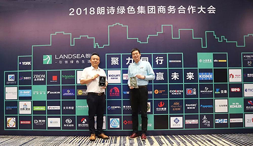 5月18日,朗詩綠色集團在南京舉辦了主題為“聚力同行,綠贏未來”的商務合作大會,東方雨虹憑借優質產品體系、專業服務質量、精誠合作精神得到朗詩集團的高度認可,獲得“優秀合作伙伴”和“綠鏈攜手伙伴”兩項大獎。東方雨虹工渠(中國)大客戶總經理苗紅斌與區域總監韓晨磊出席領獎儀式。
