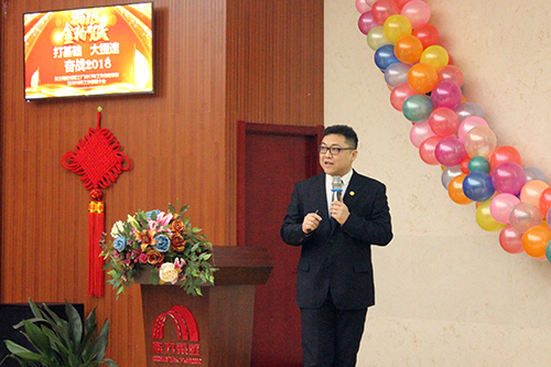 隨后,由陸殿富先生作總結(jié)講話。他肯定了咸陽生產(chǎn)基地在過去一年的變化與成長,并對(duì)2018年基地生產(chǎn)管理、成本管控、質(zhì)量管理、安全管理等方面提出要求和指導(dǎo)意見。陸殿富先生表示,2018年的主題是“加速和突破”,咸陽生產(chǎn)基地要堅(jiān)守安全底線,加強(qiáng)團(tuán)隊(duì)鍛造、運(yùn)營模式變革、技術(shù)創(chuàng)新,打基礎(chǔ)、大提速,一起奮戰(zhàn)2018。