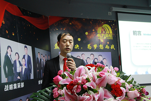 四川東方雨虹總經理助理何英女士首先以數據總結分析了2017年四川公司取得的進步、存在的不足和及今后的改進措施。總工程師郭曉樂先生針對標準化施工、系統化服務做了工作匯報,他肯定了技術、成本、工程、安質版塊取得的成績,并對未來四川、重慶市場的標準化施工充滿期待。總經理張帆先生作“提檔加速 贏在當下”的主題報告,他表示2018年要以合伙、合作協同為主要經營方式,并針對集采客戶拓展、合伙人開發方面提出了要求。