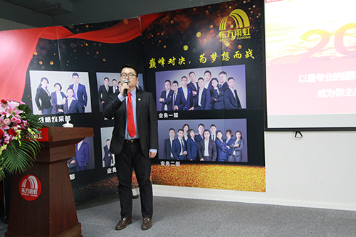 1月20日上午8點半,在莊嚴的國歌聲中,四川東方雨虹2017年總結表彰暨2018年工作部署大會在成都富頓中心拉開帷幕。東方雨虹集團副總裁張志萍女士、工渠(中國)副總經理兼人力資源總監王媛麗女士、工渠(中國)市場總監王玉飛女士、TPO支持服務平臺副總工程師王琮先生等,以及來自四川、重慶的160名員工參會。本次會議以“提檔加速 贏在當下”為主題。