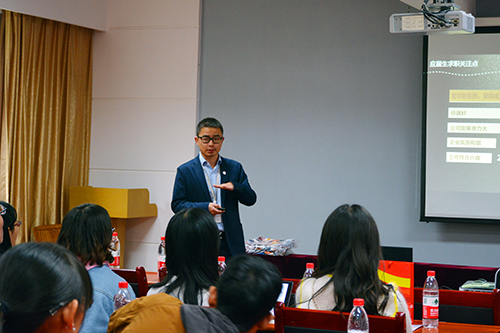 接著,人力資源部經(jīng)理劉平輝依次從薪酬、福利、培訓等方面深入講解,針對應屆畢業(yè)生可能會遇到的職場難題、困惑,從新員工導師制、新員工成長培養(yǎng)體系等方面有針對性的解答。宣講結(jié)束后,同學們積極互動,結(jié)合自身專業(yè)及崗位特點等提問咨詢、提交簡歷。 本次校園招聘面向云南省各高校學生招聘,崗位以儲備干部及銷售崗位為主,公司將第一時間篩選簡歷并通知安排有關人員面試。