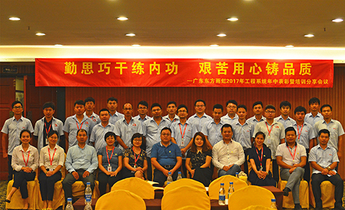 7月29日,廣東東方雨虹在廣州涵天大酒店召開工程系統2017年年中表彰暨培訓會議。廣東東方雨虹董事長兼總經理楊浩成、常務副總經理孫福琴、副總經理劉長美、總經理助理張舜苗、王愛超及工程部、質安部全體員工參與本次會議。