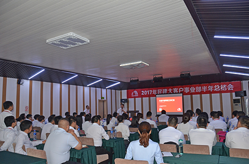 首先,民建公司總經理吳應林先生對公司未來發展方向、重點進行宣講;接著,民建大客戶事業部副總監羅浩然先生就大客戶2017年度上半年經營的各項數據作了詳細報告,并據對家裝公司現狀及特點,下半年經營規劃為各區域的經營工作提供了可行性建議;隨后,大客戶市場部經理嚴立先生就2017年上半年市場動作、下半年市場進行了分析與分享,并表示將帶領團隊攻堅克難,為大客戶達成全年銷售目標添磚加瓦。 最后,大客戶總監彭武先生對本次會議進行總結。在認可上半年的業績的同時,他也表示市場還有更多的發展機會,鼓勵員工不斷學習提升自己。