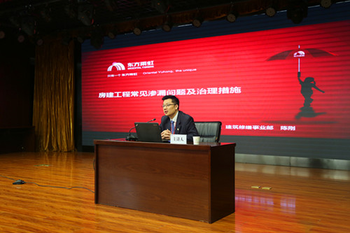 4月14日,防水施工與防滲漏技術及“智慧工地”知識講座在湖南長沙五礦二十三冶建設集團總部召開,本次會議由五礦二十三冶建設集團主辦,東方雨虹協辦。五礦二十三冶建設集團副總經理吳建國、技術中心總經理路惠明攜二十三冶總包單位、設計單位代表出席會議,東方雨虹工渠(中國)修繕業務部南方區副總工程師陳剛、技術服務部湖南副總工程師艾淇涌進行課程分享。