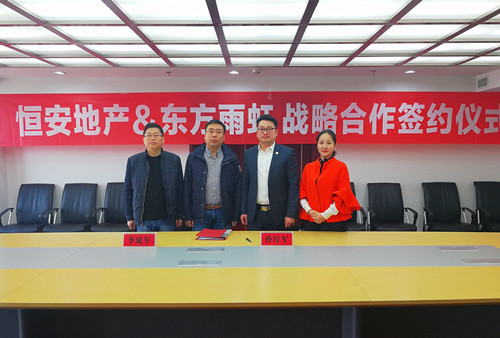 2月23日上午,臨汾恒安地產(chǎn)攜手東方雨虹,達(dá)成戰(zhàn)略合作。簽約儀式在恒安地產(chǎn)總部13層接待中心順利舉行,恒安地產(chǎn)總經(jīng)理李延軍與東方雨虹山西省總經(jīng)理孫厚軍出席了簽約儀式,并代表雙方企業(yè)簽訂戰(zhàn)略合作協(xié)議。 自2003年臨汾市恒安地產(chǎn)創(chuàng)建以來,秉承 “品質(zhì)為重、信譽(yù)為本”的企業(yè)精神,在臨汾地區(qū)打造出多個(gè)示范小區(qū)。此次聯(lián)手東方雨虹,雙方將在地產(chǎn)項(xiàng)目的防水系統(tǒng)方面實(shí)現(xiàn)戰(zhàn)略合作,共同打造優(yōu)質(zhì)樓盤,更好的詮釋了兩家企業(yè)以品質(zhì)為重、致力于安居樂民的愿景。