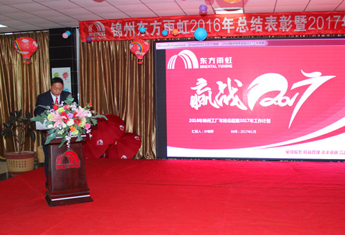 1月19日上午,東方雨虹錦州生產基地舉行2016年度總結表彰暨2017年度工作部署大會,當地政府領導、全體員工及部分家屬齊聚一堂,分享工作經驗,表彰先進,齊頭并進,贏戰2017。