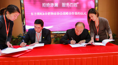 12月28日,北京東方雨虹防水技術(shù)股份有限公司與合肥物業(yè)協(xié)會(huì)在合肥豐大國(guó)際大酒店舉行了戰(zhàn)略合作簽字儀式,協(xié)議從2017年1月1日起生效,為期三年。東方雨虹工程渠道南方修繕事業(yè)部副總經(jīng)理竇吉培、東方雨虹合伙人王建安,合肥物業(yè)協(xié)會(huì)會(huì)長(zhǎng)候建平、秘書長(zhǎng)程純潔、副會(huì)長(zhǎng)及會(huì)員企業(yè)負(fù)責(zé)人等共四十余人出席了簽約儀式。
