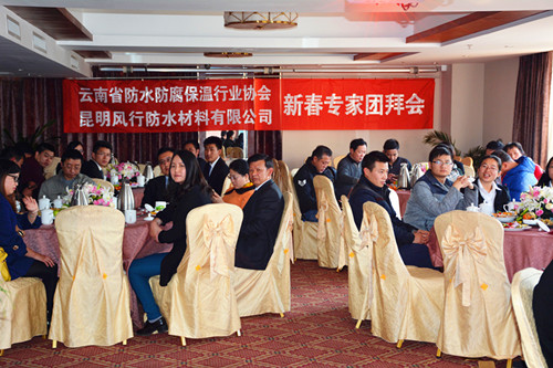 由云南省防水防腐保溫行業協會、昆明風行防水材料有限公司主辦的2016年新春專家團拜會,在鼎易大酒店拉開帷幕。來自云南省防水防腐保溫行業協會、房地產業協會、設計院、各大型房地產企業等技術專家代表近30人參加了此次會議。