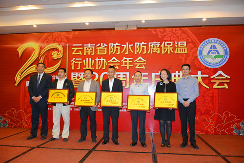 風行防水受邀參加云南省防水防腐保溫行業協會2015年年會暨二十周年慶典大會。會上,風行防水榮獲“云南省防水防腐保溫行業協會20周年突出貢獻獎”殊榮,風行防水總經理呂學強獲任“云南省防水防腐保溫行業協會常務副會長”,副總經理劉光宗獲聘“云南省防水防腐保溫行業協會專家組組長”,總工程師李曉明獲聘“云南省防水防腐保溫行業協會專家組成員”。 5月20日