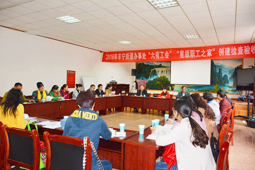 五華區豐寧街道辦2016年“六有工會”“星級職工之家”創建檢查驗收會在風行防水小禮堂召開,昆明市五華區總工會常務副主席張麗萍、職工俱樂部主任熊昆華、豐寧街道總工會副主席楊忠國一行蒞臨風行防水指導,轄區內有關企業共計16家前來參會。 11月3日