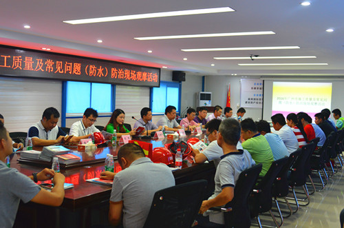 9月28日下午,由廣州市建設工程質量監督站、廣東東方雨虹和中建三局第一建設工程有限公司承辦的防水分會場觀摩活動正式開始。廣東東方雨虹常務副總經理孫福琴作開場致辭,她向大家介紹了公司發展情況與近年來取得的成績,并提到,東方雨虹推出標準化施工與防水系統服務商兩大體系,旨在促進防水行業健康發展。廣州市建設工程質量監督站黃騰霄部長在發言中表示,防水工程雖然在建筑工程中份額很小,但關乎建筑質量,去年發布的由東方雨虹參編的《廣州市建筑防水工程常見質量問題防治指南》,對工程質量管理起到了很好的指引作用,今年與東方雨虹一起拍攝的《建筑工程施工工藝標準系列防水工程視頻專輯》后期也將免費發放供各單位學習。 開幕式結束后,與會人員參觀了工地現場,東方雨虹現場展示了防水樣板模型、防水施工工法、熱熔SBS改性瀝青卷材施工、城市綜合管廊系統防水解決方案以及滲漏維修系統解決方案等項目,得到了觀摩人員的好評。