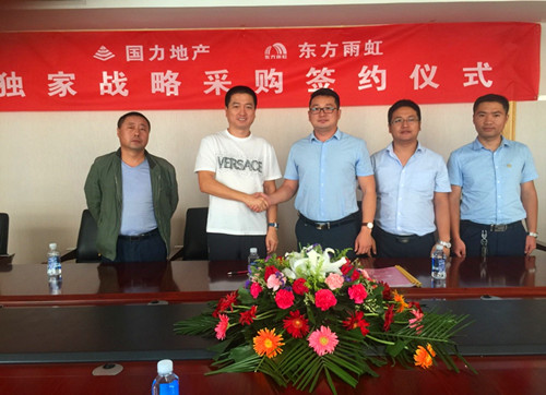 8月26日上午,東方雨虹與忻州國力房地產(chǎn)開發(fā)有限公司在忻州國力地產(chǎn)總部簽訂防水材料戰(zhàn)略合作協(xié)議,忻州國力地產(chǎn)董事長王英杰先生、東方雨虹工程渠道事業(yè)部山西省總經(jīng)理孫厚軍先生出席本次簽約儀式。 在簽約儀式上,王英杰先生對(duì)東方雨虹的產(chǎn)品質(zhì)量及企業(yè)文化給予了高度認(rèn)可。孫厚軍先生對(duì)此表示感謝,并表示公司會(huì)在提供防水材料基礎(chǔ)上,以兩化戰(zhàn)略——品牌效應(yīng)放大化、系統(tǒng)服務(wù)精細(xì)化為主導(dǎo),把東方雨虹的技術(shù)優(yōu)勢延伸到國力地產(chǎn)。