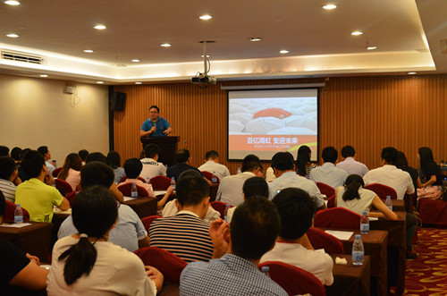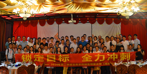 7月30日,以“鎖定目標,全力沖刺”為主題的廣東東方雨虹2016年第二季度業務系統銷售明星會暨《雨虹知多少》發布會在涵天酒店九樓舉行。廣東東方雨虹董事長楊浩成、常務副總經理孫福琴、總經理助理張舜苗、總經理助理王超以及業務系統、職能系統共計70多名員工出席了此次會議。