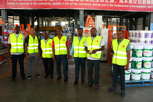 在惠州生產(chǎn)基地相關(guān)人員的引領(lǐng)下,考察團(tuán)參觀了東方雨虹惠州生產(chǎn)基地改性瀝青卷材、防水涂料生產(chǎn)車間和模型展廳。馬里奧向考察團(tuán)一行介紹了東方雨虹的發(fā)展歷史和企業(yè)文化,提到東方雨虹是一家集研發(fā)、生產(chǎn)、銷售和施工于一體的防水系統(tǒng)服務(wù)商,近年來為非洲各國(guó)大型基礎(chǔ)設(shè)施提供了優(yōu)質(zhì)的防水材料和專業(yè)的技術(shù)支持,并為當(dāng)?shù)嘏囵B(yǎng)了一批標(biāo)準(zhǔn)化施工工人,這些都得到了客戶的認(rèn)可和當(dāng)?shù)卣闹С郑蔀楹芏嗫蛻舻暮献骰锇椤⒂^后,考察團(tuán)對(duì)基地的生產(chǎn)能力及產(chǎn)品質(zhì)量給予了極高地評(píng)價(jià),并有兩家建筑商當(dāng)場(chǎng)與東方雨虹簽訂了海外代理合作協(xié)議,還表示要將本次在東方雨虹的考察結(jié)果帶到本地去推廣。