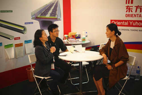 本次展會東方雨虹攜PMH-3080高密聚乙烯自粘膠膜防水卷材、PBC-328非固化橡膠瀝青防水涂料、鐵路橋涵專用RWB-801高聚物改性瀝青防水卷材、SPU-301單組份聚氨酯防水涂料等高科技產(chǎn)品參展,重點展示它們在房屋、高鐵、道橋建筑等工程中的防水應用,得到了客戶和業(yè)內(nèi)人士的廣泛好評。短短的4天展會中,東方雨虹與上千位來自世界各地的采購商、設計院和相關業(yè)內(nèi)人士進行了面對面的交流,為其國際化戰(zhàn)略打下了堅實的基礎。