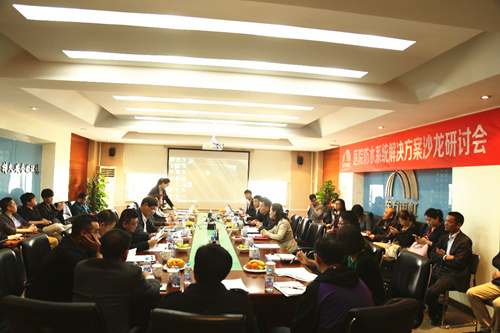 2016年4月13日,北京市醫(yī)院管理局基建管理辦公室主任陳虹、北京市醫(yī)院建筑協(xié)會(huì)副會(huì)長(zhǎng)董建華、北京市十余家醫(yī)院基建處處長(zhǎng)、院長(zhǎng)和數(shù)家設(shè)計(jì)院相關(guān)領(lǐng)導(dǎo)一行25人參加了由東方雨虹承辦的“醫(yī)院防水系統(tǒng)解決方案沙龍研討會(huì)”。