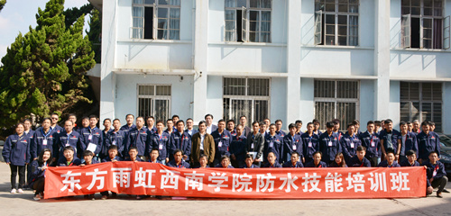 4月7日上午,東方雨虹職業(yè)技術(shù)學院西南學院在昆明風行防水材料有限公司組織開展了獲取國家職業(yè)資格證的防水技能專項培訓(xùn)。來自四川、云南等地的工程渠道代理商及施工工人、直屬業(yè)務(wù)施工工人共計60余名學員參加了本期培訓(xùn)班。 昆明風行防水材料有限公司總經(jīng)理呂學強先生首先致歡迎詞,并預(yù)祝各位學員取得優(yōu)異成績。會上,東方雨虹人力資源總監(jiān)、東方雨虹職業(yè)技術(shù)學院院長丁毅先生發(fā)表了關(guān)于工匠精神、傳承及未來防水行業(yè)防水工人的要求及社會地位提高的講話,并強調(diào)了術(shù)業(yè)有專攻,本次防水技能培訓(xùn)一是要注重精神,切實做到“匠心匠魂”;二是要注重流程,熟練掌握技能,通過培訓(xùn)不斷學習,助推防水行業(yè)的飛躍。