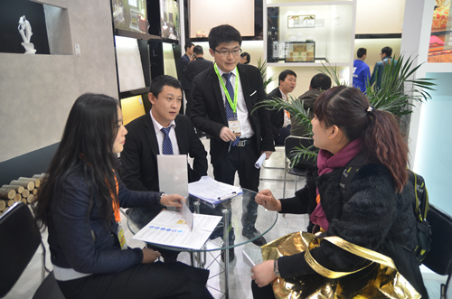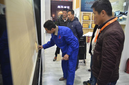 一大早,慕名前來的客戶就擠滿了洛迪展廳,近距離觀看和感受硅藻泥產品的肌理、質感。洛迪硅藻泥產品因其吸附分解甲醛、凈化空氣、調溫調濕、防火阻燃、吸音降噪等生態環保性能以及各有千秋的樣式、優越的品質、獨特的藝術美感和表現力吸引了不少觀眾流連。 展會剛開館就成功簽訂了兩家客戶,可謂是旗開得勝,也為此次展會奠定了成功基調。展會第一天,現場不斷傳來簽約成功的喜訊。