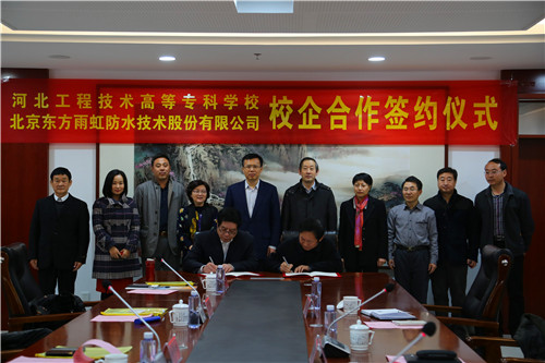 11月17日,東方雨虹與河北水利電力學(xué)院(現(xiàn)河北工程技術(shù)高等專科學(xué)校)簽署聯(lián)合培養(yǎng)項目意向書,未來,東方雨虹將與校方在建筑防水、保溫等職業(yè)化教育領(lǐng)域開展合作,探索理論與實踐相結(jié)合的教學(xué)模式,創(chuàng)新校企合作、中西結(jié)合的教學(xué)方法,雙方優(yōu)勢互補,力圖成為中國建筑防水、保溫領(lǐng)域職業(yè)化教育的成功典范。 簽約儀式上,河北水利電力學(xué)院(現(xiàn)河北工程技術(shù)高等專科學(xué)校)黨委書記蘭耀東首先致歡迎辭,對于學(xué)校的現(xiàn)狀進行了詳細的介紹:學(xué)校始建于1952年,多年來經(jīng)過不斷拼搏發(fā)展,于2015年10月16日,通過專家評定,升為本科院校。未來,學(xué)校將建設(shè)成為行業(yè)特色鮮明、學(xué)科特色突出的應(yīng)用技術(shù)型本科院校。與東方雨虹的校企合作,將為學(xué)校人才發(fā)展注入新的活力,學(xué)校也會進一步強化專業(yè)培訓(xùn)與實踐教學(xué)的針對性,設(shè)計符合企業(yè)需求的教學(xué)方案,培養(yǎng)更多創(chuàng)新型、實用型人才。