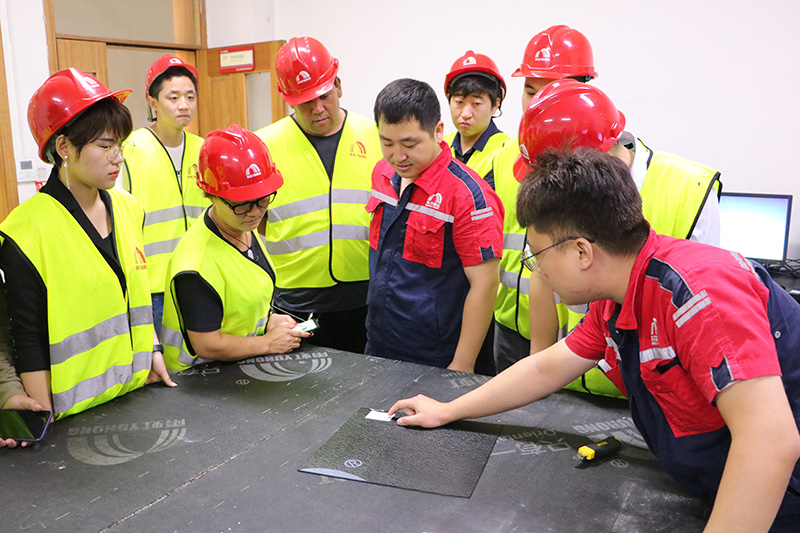 在東方雨虹唐山生產(chǎn)基地瀝青材料主任工藝師萬東永、東方雨虹工建集團(tuán)渠道天津區(qū)域經(jīng)理李雪鵬的帶領(lǐng)下,合伙人先后參觀了唐山東方雨虹的卷材生產(chǎn)車間,涂料生產(chǎn)車間和質(zhì)量檢測中心,從原材料進(jìn)廠質(zhì)量把控、產(chǎn)品的生產(chǎn)過程、成品出廠的層層質(zhì)量檢測等生產(chǎn)一線的實際情況有了全面認(rèn)知。