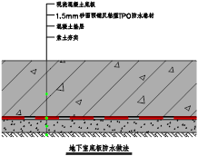 1.采用預鋪反粘工法施工的TPO防水卷材,與后澆的液態混凝土漿料反應固結后,防水層與混凝土結構無間隙結合,杜絕層間竄水隱患,能有效提高防水系統的可靠性;