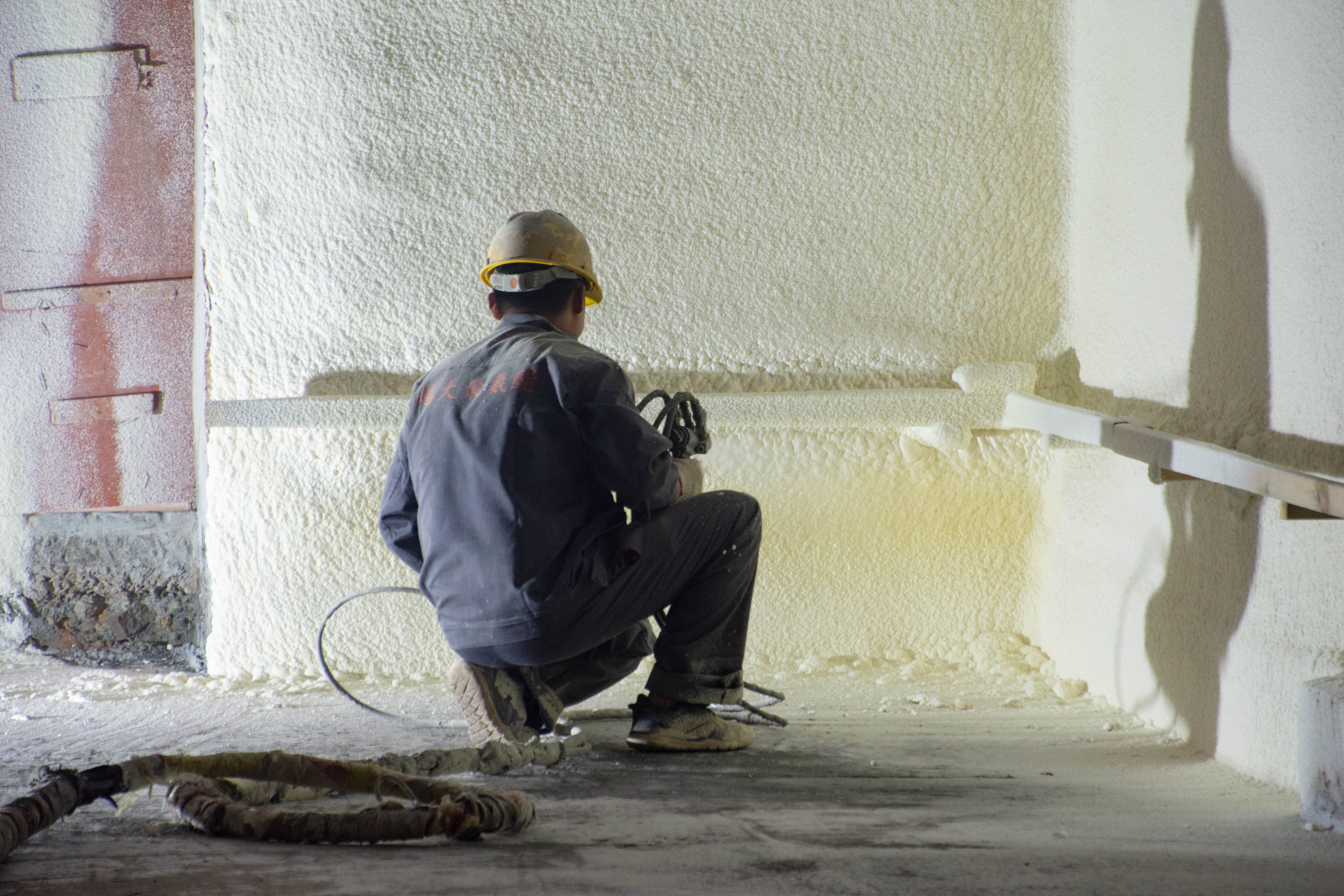 越大冷鏈倉儲專用聚氨酯是以國內外優質異氰酸酯為黑料,配以越大自主研發組合聚醚,以及多種助劑,經專業噴涂設備混合霧化直接噴涂在冷庫基層的保溫材料。