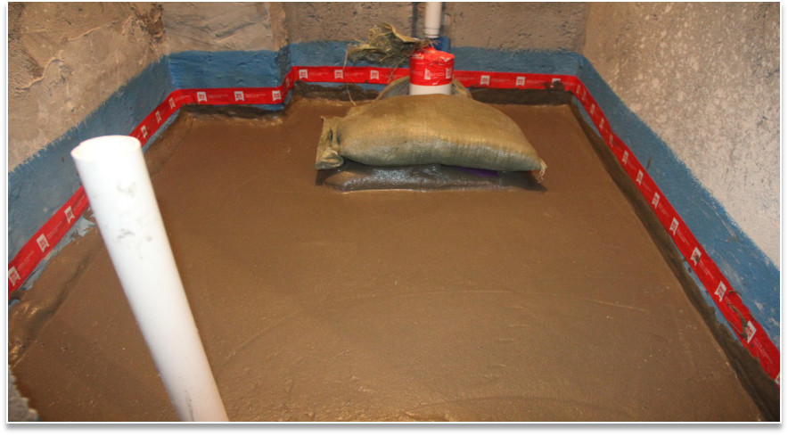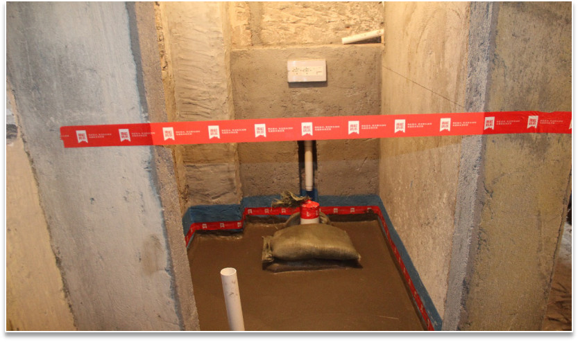 底部防水層檢查:確定完成閉水實驗,無滲漏水現象。檢查基層是否平整、干凈、堅實無松動。