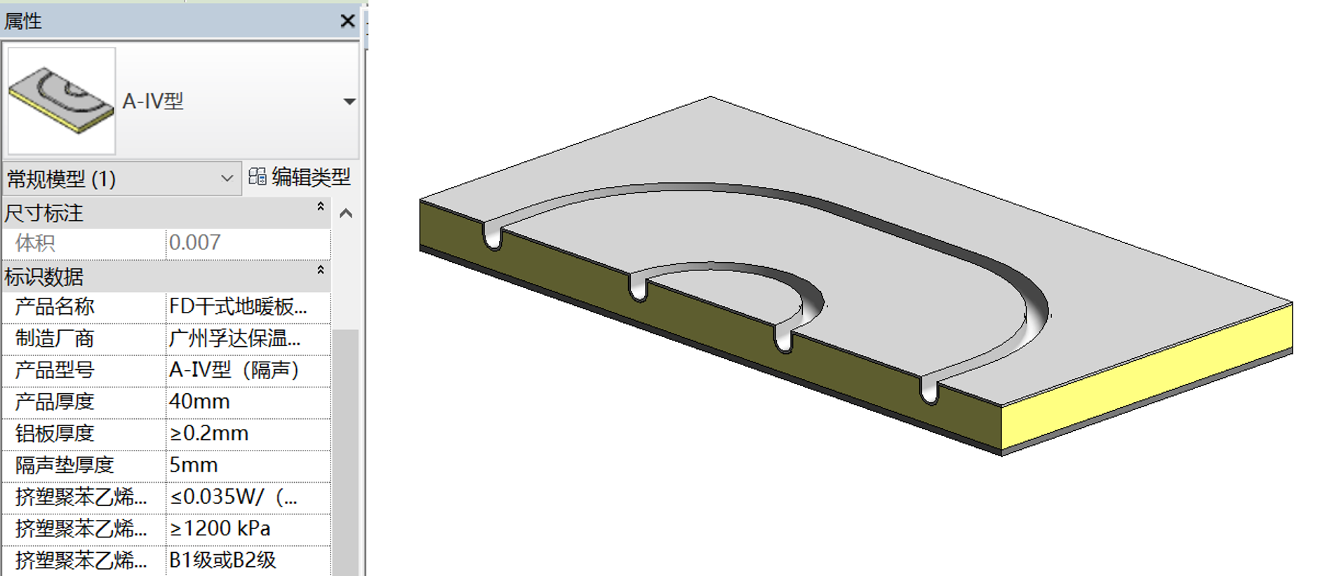 例如:FD干式地暖模塊(隔聲型)A-IV型,該產品族信息及模型如下。