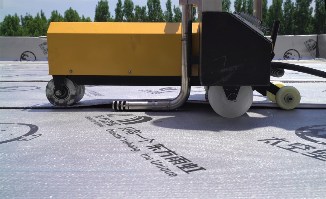 夏季施工,黑色卷材吸熱后迅速升溫,卷材表面溫度近50℃,高溫導致瀝青稀軟,卷材施工后表面鼓包,嚴重影響卷材與基層的粘接效果。