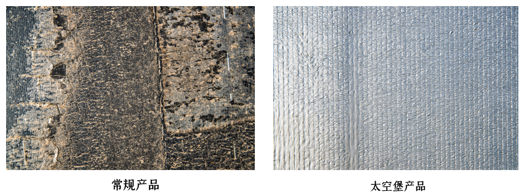 常規產品在施工一周后,隔離膜逐漸風化,瀝青基主體失去保護。