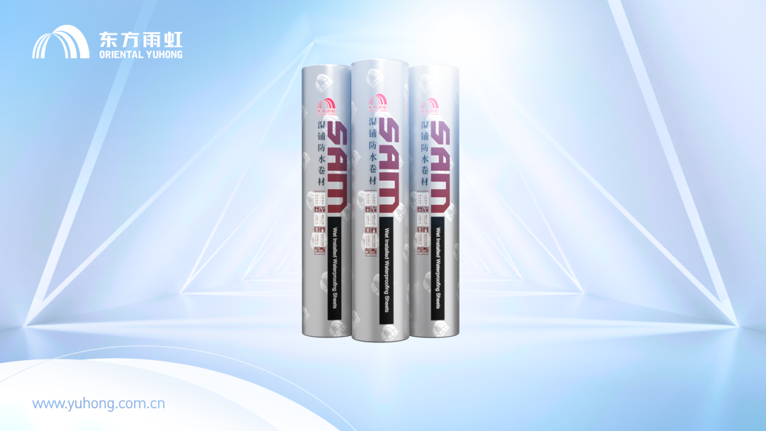 眾所周知,采用冷粘法施工的濕鋪卷材是一種低碳節能且環境友好型的防水材料。該卷材對基層要求相對寬容,不僅可以在潮濕基面上施工,更能夠有效提高施工效率,故廣泛應用于各類建筑防水工程。但常規濕鋪膜基卷材往往存在“易磕破、易撕裂、易翹邊空鼓”等問題,為此,東方雨虹研發團隊結合豐富的施工實踐與探索經驗,成功研發SAM-924纖維增強型高分子膜基自粘瀝青防水卷材。