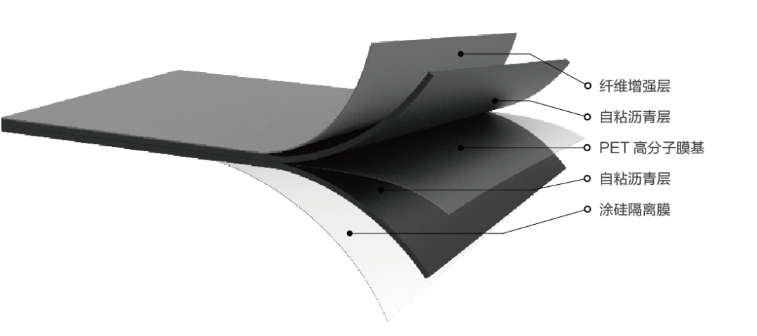 纖維增強層比表面積大,表面能涂刷多種柔性防水涂料(如丙烯酸、聚氨酯、瀝青涂料等),緊密鑲嵌復合效果好。