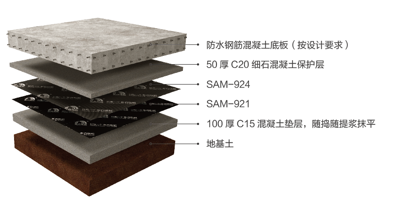 SAM-924纖維增強型高分子膜基自粘瀝青防水卷材常見的防水系統方案包括: