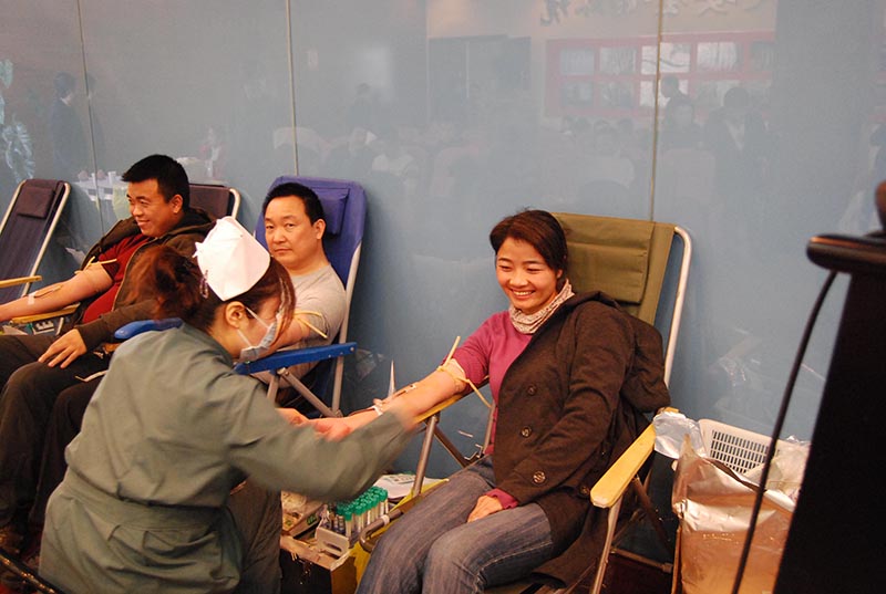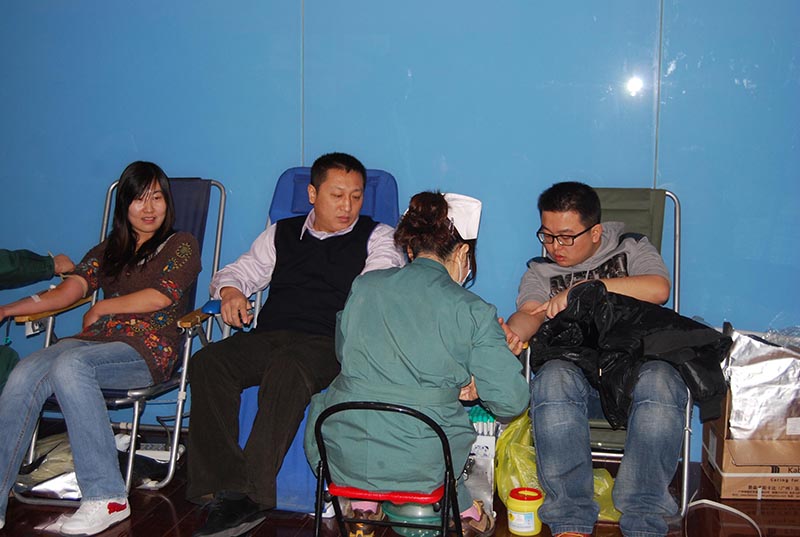 12月19日,北京的室外氣溫已接近零下10度。位于北京朝陽區高碑店的北京東方雨虹公司底樓的大會議室里卻暖意融融。2009年歲末東方雨虹義務獻血活動在此進行。此前,70余名來自公司各部門的員工報名參加本次獻血。